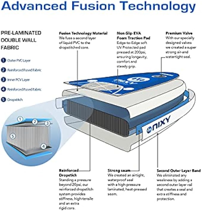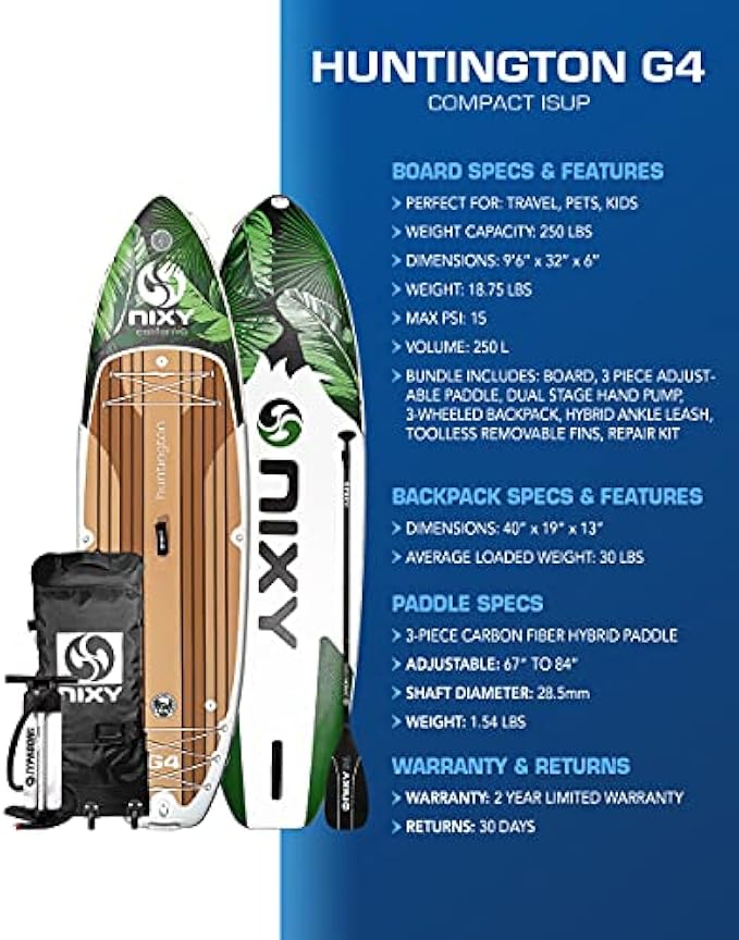 Built to Last. Designed with unsurpassed quality in mind, the Huntington will last for years to come. Built with military-grade PVC and our FusionTech layered woven drop stitch. NIXY ISUPs are the most durable and advanced board you can buy.