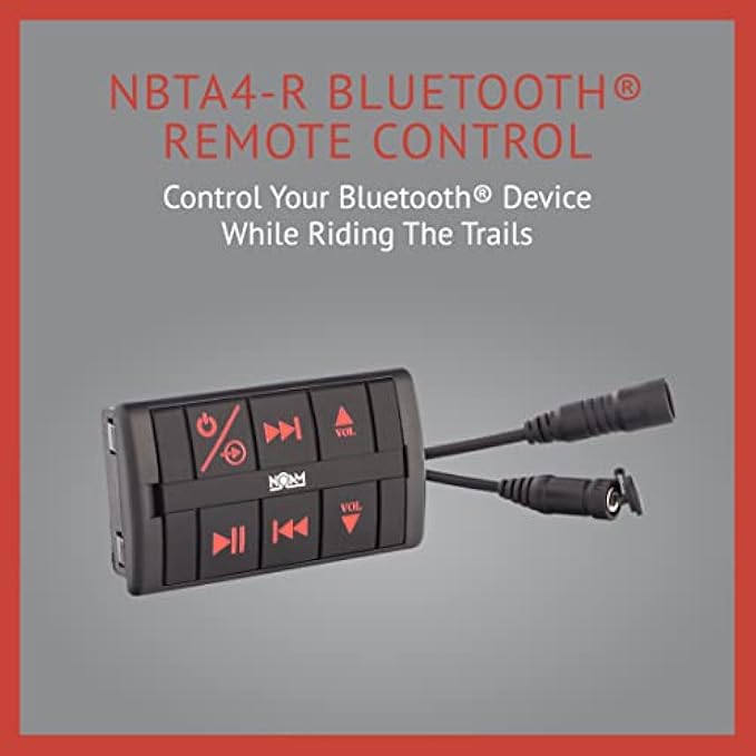 EASY CONNECTIVITY: Use the smart Bluetooth remote to control your phone's function or simply connect your music player to the remote's Inline AUX input. Control Your Phone/MP3 player – the NBTA4-R can control your Bluetooth device, allowing you to comfortably store your Media player while riding the trails!