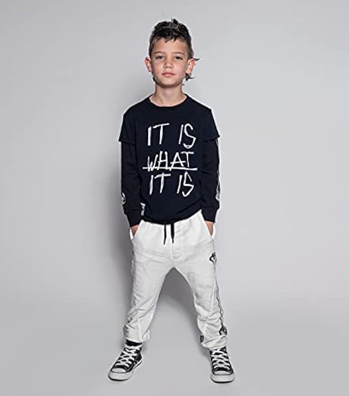 The perfect long sleeve T that embodies comfort and style while maintaining high-end quality. The front of this classic nununu t-shirt for boys & girls has a cheeky print. The layered-sleeve effect calls to mind grunge-era rock gods - it has the same lived-in softness those guys demanded too.