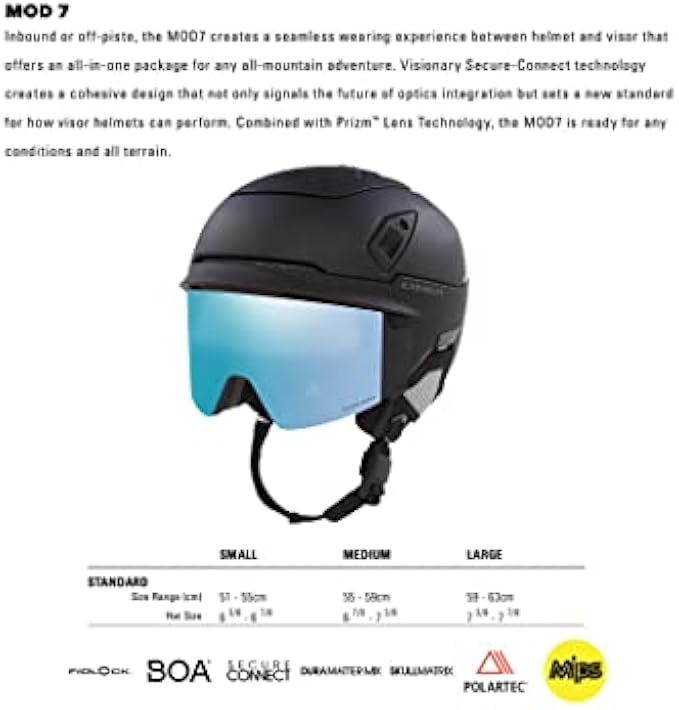 -SECURE-CONNECT: Oakley’s proprietary helmet technology, Secure-Connect, seamlessly integrates optics and helmet as one for a completely new experience. Secure-Connect magnetically connects and mechanically secures the visor to the helmet, both in the ride and stowed positions.