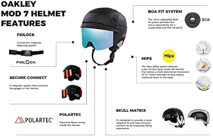 PRODUCT BUNDLE INCLUDES: Oakley MOD7 Helmet + Integrated Goggles + Oakley Helmet Bag +Oakley Sticker + Designer iWear Collapsible Water Bottle with Carabiner