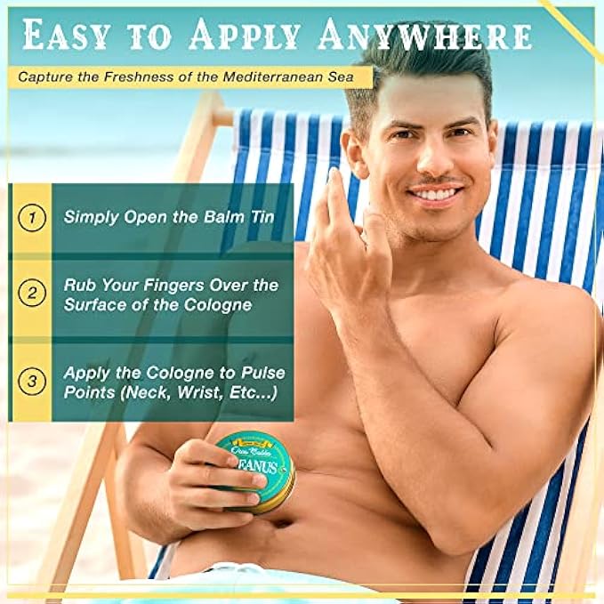 Men's Solid Cologne Balm -- Rub your fingers over the surface of the cologne. Apply to your pulse points (wrist, neck, beard, etc.). No need to mess around with smelly sprays.