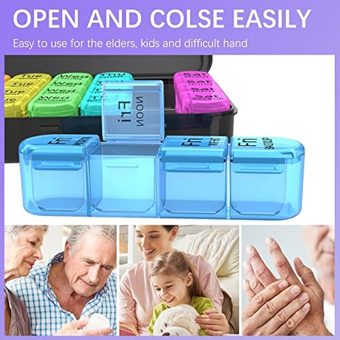 Odaro Weekly Pill Organizer 4 Times a Day, Daily Pill Box 7 Day, Large Travel Pill Case with 28 Compartment to Hold Medicine, Vitamin and Supplement (Color)