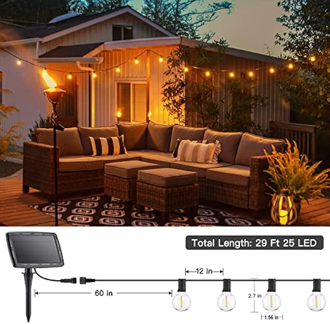 Energy Efficient LED String Lights: LED string lights total 20 feet long, 12 LED G40 bulbs (light holders) spaced 12 inches apart. Each LED bulb is only 1W, helping you save more electricity while emitting comfortable lighting in your own place. The bulb is cool to the touch after hours of use