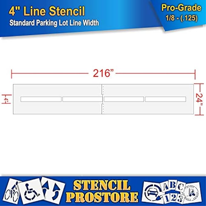 INCLUDES: One (1) x 4" Line Stencil - (Extra Long 18ft with Extra Wide 10" Overspray Area)