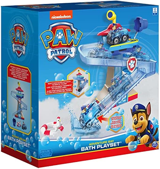The PAW Patrol Adventure Bay Bath Playset is a great gift for boys and girls aged 3 and up. Adult assembly required. Vehicle includes 3 LR44 batteries. Turn bath time into playtime with this exciting playset!