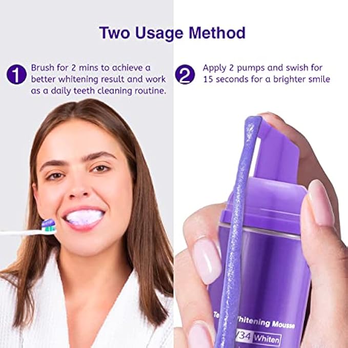 I am 57 years old. Over time my teeth have taken on a grey yellowish color. I decided to try the whitening strips and toothpaste. I haven’t seen much difference with the toothpaste. Honestly I hate the strips. They don’t evenly change the color. When I saw a commercial for the purple color whitening tooth care I had to try it. Of course I turned to Amazon and searched for the purple teeth whitening stuff. That’s where I found teeth whitening mouse by NOLIPEM. It’s quick and easy to use. I didn’t have to wait weeks for a result. Just 2 squirts and 15 seconds of swishing and I was done. I love the convenience. No more whitening strips for me!