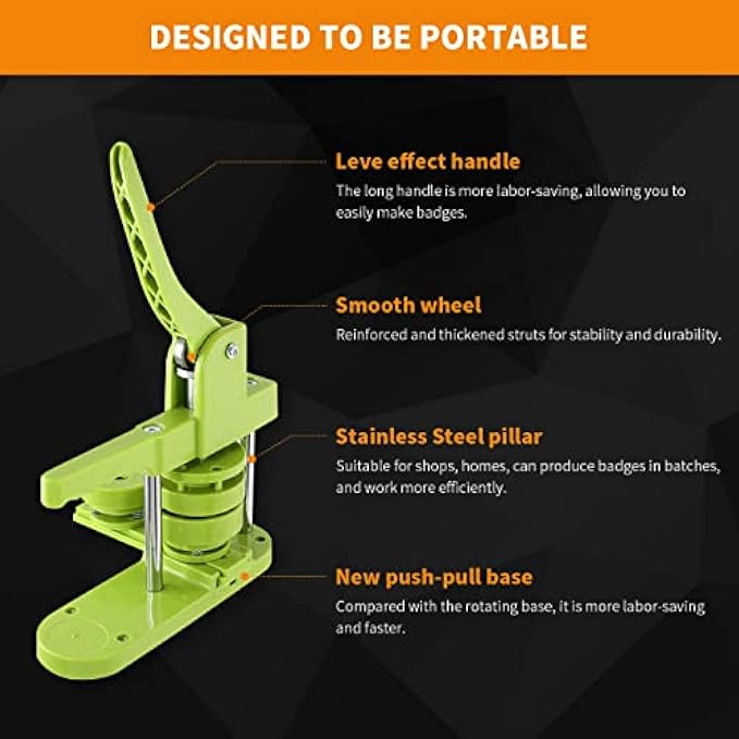 【Easy to install and remove】 The QCGGOW badge machine adopts a sliding design, which is convenient and labor-saving, and includes an instruction manual. It only takes three simple steps to complete the switching of badges of different sizes.
