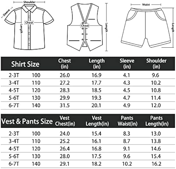 • Design feature: The short sleeves dress shirt and elastic waistband short pants keep kids cool and comfortable.The slim vest features polka dot pattern,single-breasted with real pocket,very tangible and our child is more confident in wearing it.