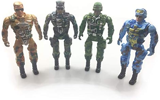 SOLDIER TOYS - 4 Pack plastic Easter eggs are prefilled with 4 designs of deformable soldier action models - air force, army, navy, commando - all valiant and heroic in bearing