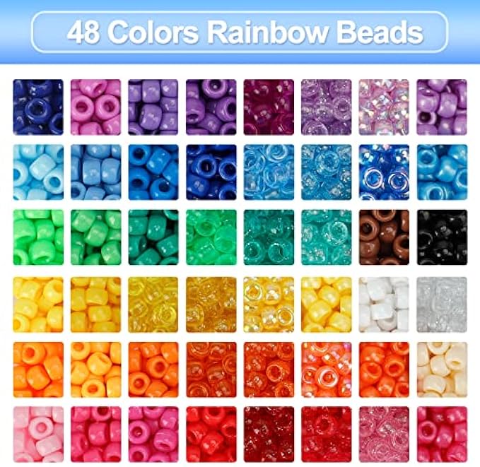 RICH COLORS: The 2400pcs rainbow beads set contains 48 colors, each color has 50 beads. There are 5 styles for you to choose: solid color, pearl color, transparent color, glitter color, AB color. Each color is completely different, suitable for DIY projects of all styles.