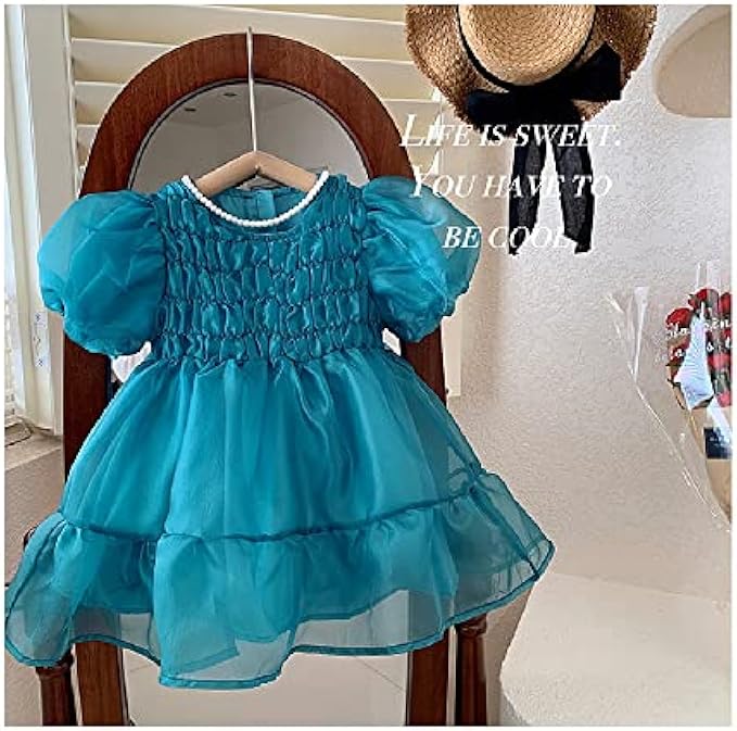 Quenny Children's dress girls' puff sleeve puffy tulle skirt Shu sweet baby princess dress