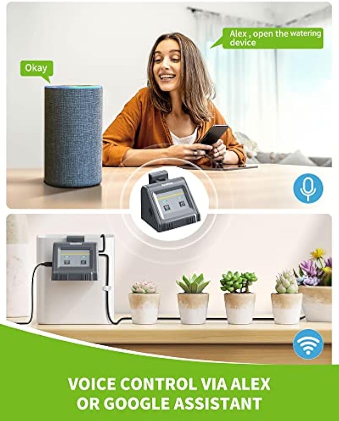 【Worry-Free Watering】With "Auto" function, customize your watering schedule according to local weather, temperature, humidity, sunrise/sunset or day of the week. The timing mode can be set, the watering time is 20 seconds to 30 minutes, and the watering frequency is 1 hour to 24 hours or 1 day to 7 days.