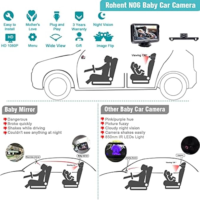 Long-term Durability and 3 Years Warranty. Rohent provide instructions and a QR code that links to a YouTube video how to install.If you find anything wrong with your car baby monitor with camera do not hesitate to let us know and we will take care of it.