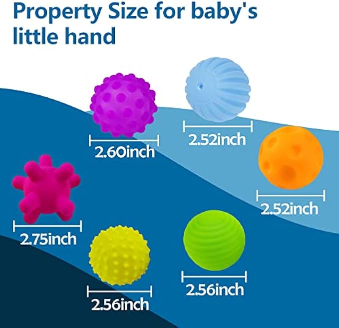 ??【SAFE BABY TOYS 6-12 MONTHS】BPA Free - Each stress relief infants textured multi ball is non-toxic and this baby ball complies with the US ASTM toys safety standards, and All Sensory Balls DO NOT have small plastic plugs to avoid the danger of suffocation, but they still make sounds. which means it is safe for your little ones. It is easy to wipe clean. Making it the safest choice teething toys for babies and for toddler. Recommended Baby toys 0-6 months sensory toys for toddlers 1-3.