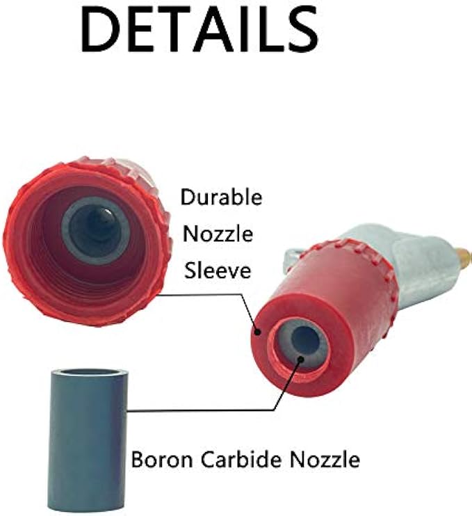 ?【THE RED NOZZLE SLEEVE IS MORE DURABLE】: This sandblasting gun adopts a red nozzle sleeve, which is made of high-quality polyurethane material, so it has better sealing performance and longer wear resistance.