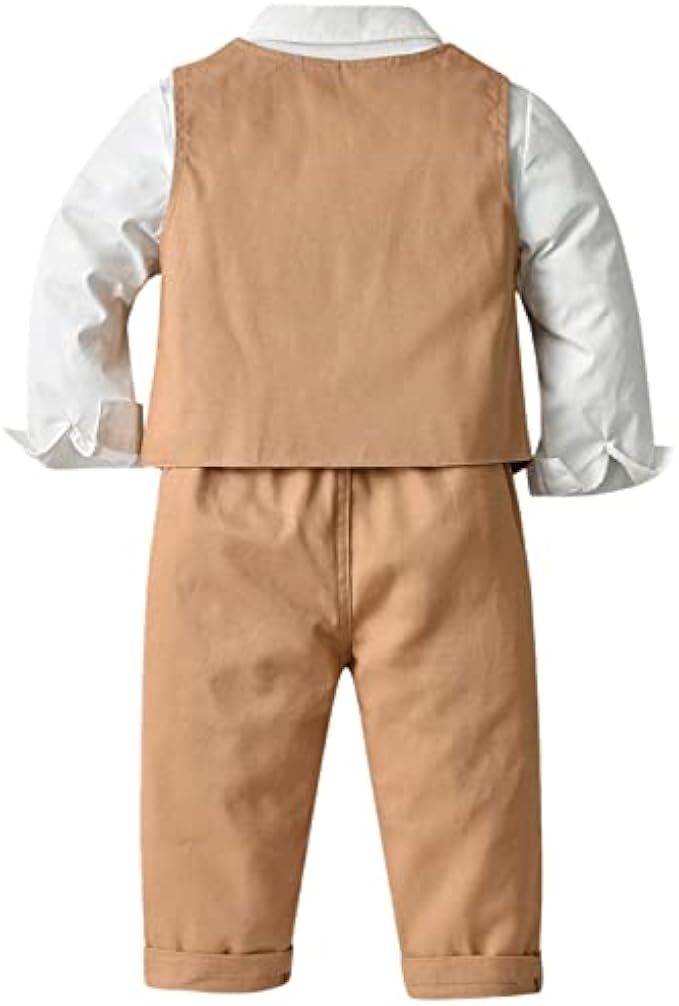 Boy Dress Outfits: button down shirt with bowtie + gentleman vest + matching detachable suspender pants.