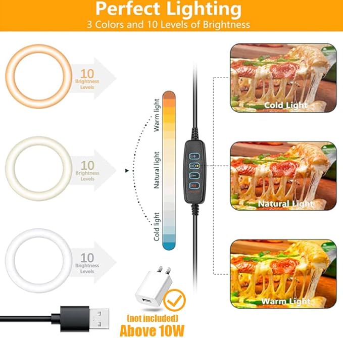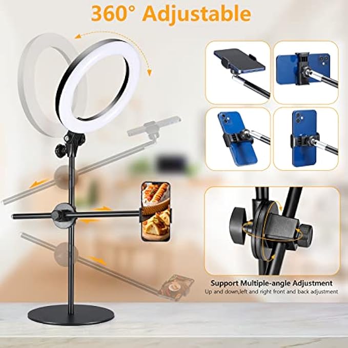 【Wide Application】The ring light for phone with adjustable arm. It can help you shoot higher quality videos or pictures. Such as food making, painting, handmade, teaching online, vlog, makeup, etc. Given that it has a perfect fill light effect,perfect for video conference, makeup,make videos and pictures. It is a perfect Christmas gift for men or women.