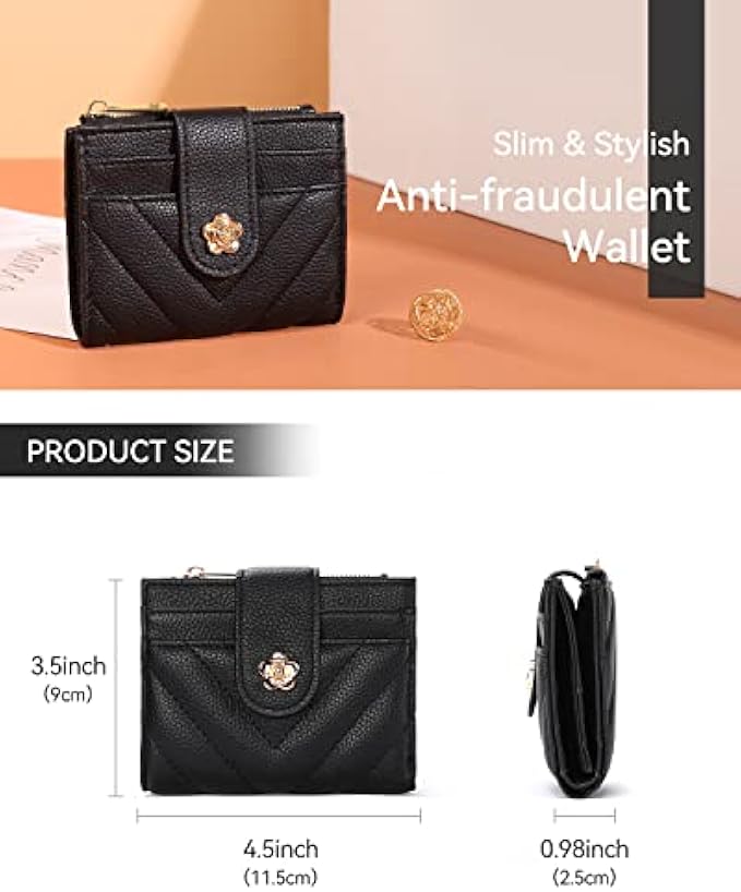 【SLIM SIZE & MINIMALIST STYLE】This small bifold wallet size is 4.9"L x 3.9"W x0.98"H, weight 0.21lb, minimalist design, small and delicate, it's easy to carry whether hold it on hand or put it in your bag,light-weight and slim women wallet great fits in your handbag, backpack, crossbody, jeans front or back pocket, etc.