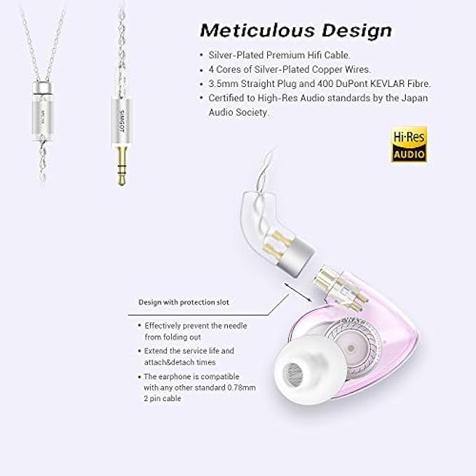 SIMGOT EM2 Hi-Res in Ear Monitor Headphones, Hybrid Balanced Armature Dynamic Driver IEM Earphones for Musician, Church, HiFi Wired Earbuds with Detachable Cable, Noise Isolating Gaming Earbuds (Pink)