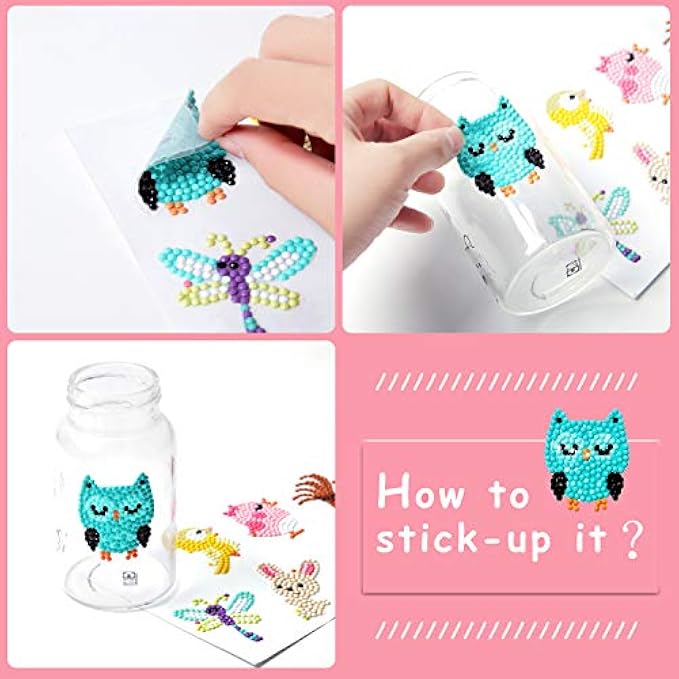 sinceroduct 64 Sheets 5D DIY Diamond Painting Sticker Set for Kids and Adults Beginner Stick-Shape Paint Mark Diamonds by Numbers More Cute Animals Dinosaurs Gifts for Kids