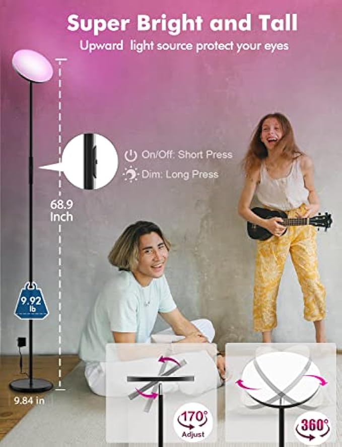 ☄【COLOR CHANGING】Smart WiFi RGB Floor Lamp provides millions of light colors. It can change colors in sync with music and TV scenes, enjoy your good time!