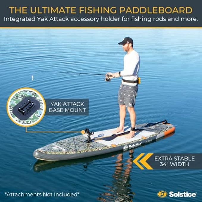 {FOR FISHING ENTHUSIASTS} Featuring an integrated Yak Attack Accessory Base Mount, attach fishing rod holders and other necessary accessories. The iSUP's included paddle comes with a ruler design so you can measure your catch of the day. Yak Attack attachments not included.