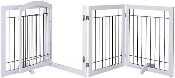 MULTIPLE CONFIGURATIONS: Consists of 4 Pet Panels, Connected and Secured Together with Sturdy 360 Degree Hinges for Multiple Configurations. Use as A Pet Gate in Doorways Full Hallways or Any Wider Areas.