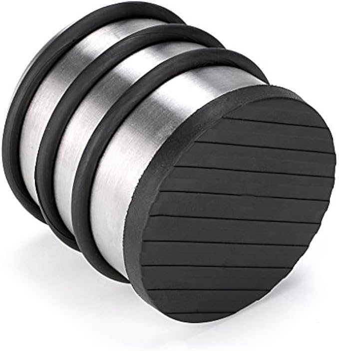 ATTRACTIVE DECORATIVE STOPPER FOR MOST DOORS - Tired of your doors swinging to and fro? An attractive door stop and don't need to go the permanent route of having to attach them to the doors. They are an attractive brushed nickel and look just fine sitting next to the door when not in use. Heavy stainless steel build,and rubber clamp. It is very easy to place and remove with one foot. These have an awesome look, and could go well with retro, contemporary, or modern style.