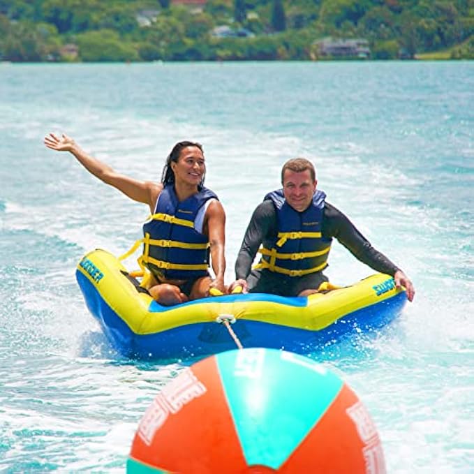 【2-Person Capacity】The Montauk2 towable tube measures 66in x 60in, ideal for 2 riders up to a total of 340 pounds to ride at the same time. Grab a friend to see what you’re really made of.