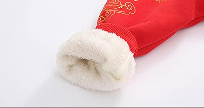 Tang Style, Chinese Dragon Pattern And Red Fleece Lined Sweatshirt Pants Design, Festive And Attractive, Good Choice For Your Kids! 5t Boys Set Short Pants Baby Boy Apparel Shirt Toddler Boy Shorts Plaid Set