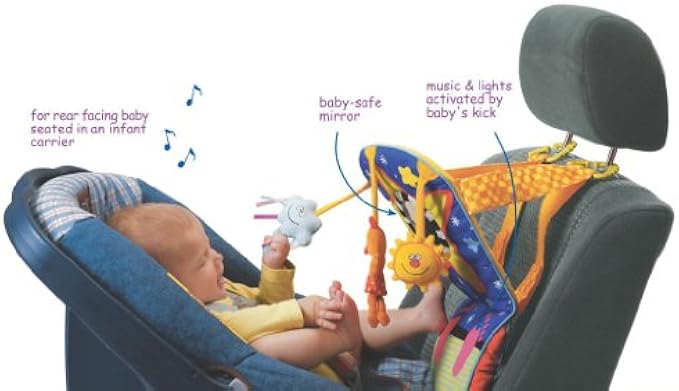 Taf Toys Toe Time Infant Car Seat Toy | Kick and Play Activity Center with Music, Lights, Mirror, and Jingling Toys | Fun Travel Baby Toy for Rear Car Seat | Easier Drive with Newborns, Babies