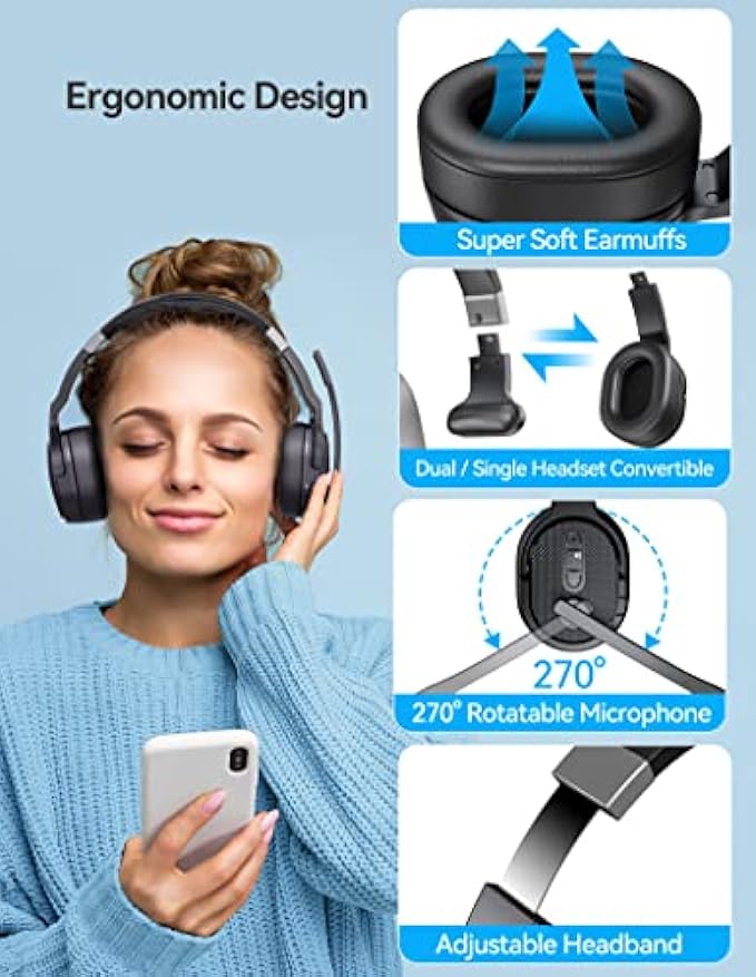 TECKNET Bluetooth Headset, Wireless Bluetooth Trucker Headset with Microphone Noise Cancelling 3 EQ Music Modes, Single and Dual Ear Wireless Headphones for Truck Drivers, Office, Call Centre Work