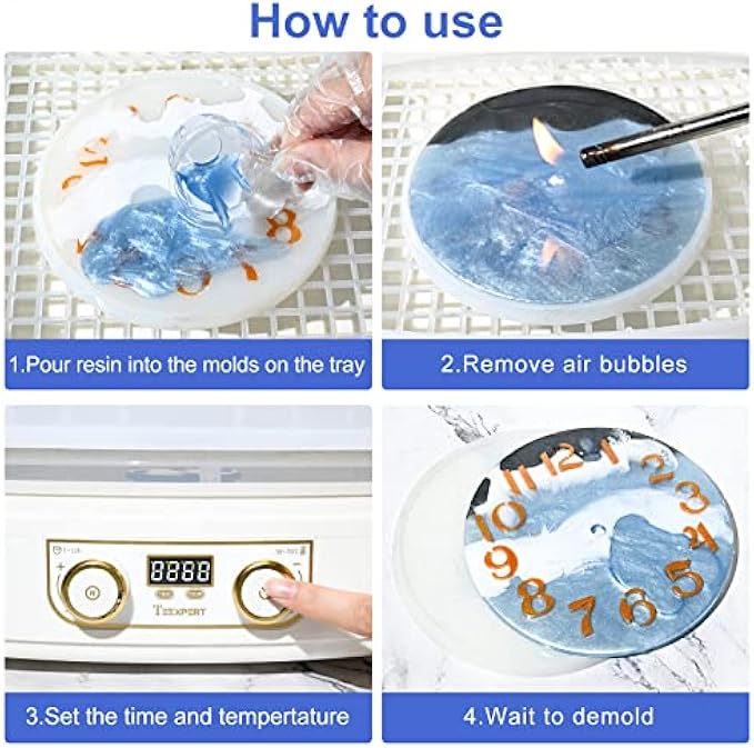 【Easy to Use】 Teexpert resin dryer is very easy to use, it only has time change knob and temperature change knob, you can set the time and temperature according to the thickness of the epoxy resin.
