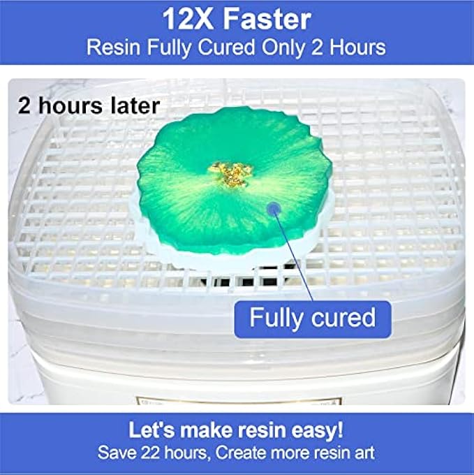 【2 Hours Quick Curing Machine】The adjustable drying time of the resin dryer is 1-12 hours, and the adjustable temperature is 95°F - 158°F (35°C-70°C), choose the right time and temperature, The fastest drying time can be 2 hours, it can speed up your production time extremely.