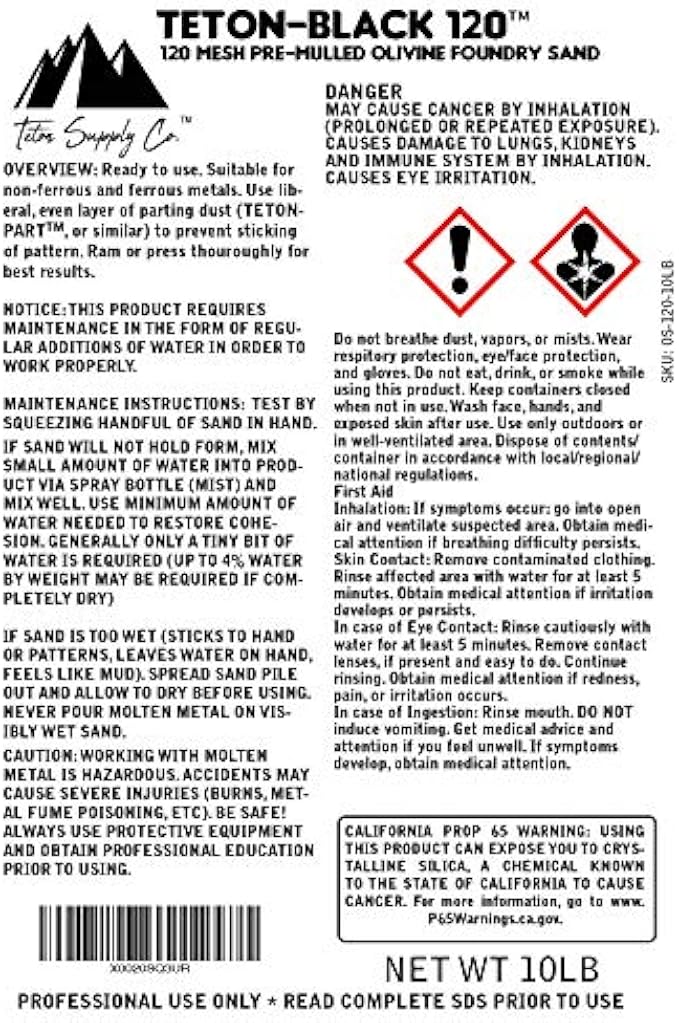 • Contains premium 120 mesh olive (magnesium iron silicate) raw sand and bentonite mix
