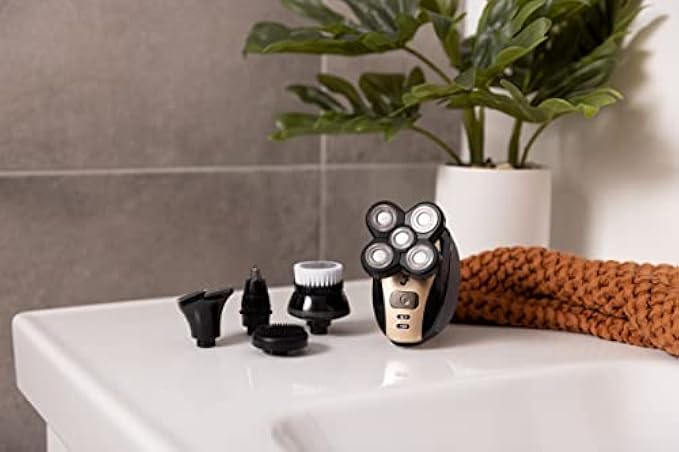 FLEXSERIES SHAVER - The revolutionary FlexSeries Shaver from Freebird, previously Freedom Grooming, is the only thing you need to keep your head clean and smooth-shaven while remaining bump and irritation-free! This durable 5 blade rotary razor has soft alloy blades featuring Advanced Anti-Bump technology, making it safe, easy to use, and convenient while shaving your head and body. Replacement blades are available. SMOOTH SHAVE - The number 1 benefit when using this razor is a smooth shave. This next-level quality electric head shaver can be used for wet or dry shaving, with or without shaving cream. The grooming kit is made of high-quality materials, making it extremely durable and waterproof, so it will last. The device is shower safe, cordless, portable, and long battery life can be charged with a rapid USB for the utmost convenience, making it great for travel. FIVE ATTACHMENTS - The all-inclusive FlexSeries kit comes with 5 different essential grooming attachments for before, during, and even after shaving. The kit includes: A five-blade rotary shaving head. A precision clipper/trimmer with 3mm, 5mm, and 7mm safety guards. A nose & ear hair trimmer. A micro & plush skin exfoliation brush. A deep cleansing massage pad. A rapid USB charging cable and a micro cleaning brush. EASY TO USE - The FlexSeries is ergonomic and easy to hold and use whether it be on your head, beard, or elsewhere. It shaves right down to the skin, without leaving any irritation such as bumps, cuts, or burn. It is designed for men who love sporting a clean-shaven head but are tired of using old shavers, razors, or blades and want the job done quickly and right. The FlexSeries kit is also a great gift for your Husband, Partner, Father, Friend, or Brother. GET STARTED - Before initial use, fully charge your shaver. This will take about 90 mins. While charging, the unit will show RED. When ready to use, the light will be solid GREEN. You're good to use your trimmer for up to 90 minutes. To keep your skin & FlexSeries healthy, make sure to change out your replaceable blades regularly to keep them sharp, clean, and rust-free.