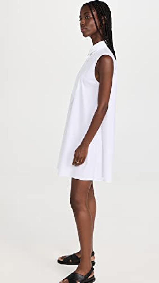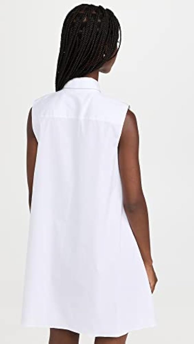 A sleeveless tunic top with a bib and half hidden button placket that can be styled as a top or as a dress.