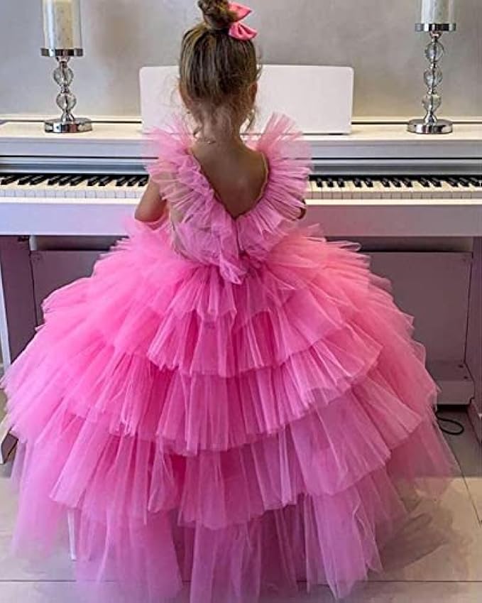 Tulle Drawstring closure Hand Wash Only Features:Fancy little kid tulle layers ball gown fluffy skirt,illusion v neckline,sleeveless,ruffles straps,empire wastline,adjustable lace up back,lightweight and comfortable touch Size:Suitable for little girls with 2-3-4-5-6-7-8-9-10-11-12-13-14 ages,Please compare your child's measurements with our size chart on the left to choose the suitable size. Custom Made:We can customzied the dress,colors according to your requests.You need to send us your exact measurements about bust,your height(from head to toe)and heels height or your other requires Occasions:Suit for boudoir shoots,prom,evening,birthday,photo shoot,pageant,photography studio,halloween cosplay costume dress,wedding party,christmas,easter,graduation,stage performance,showing and other special occasions Service:If you have any questions,please email us freely any time.If your time is urgent,please let us to know your deadline time,we will expedited produce the dress to make you get it faster