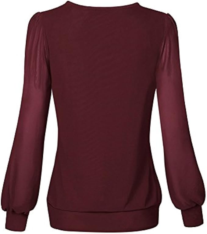 Timeson Women's Long Sleeve Scoop Neck Pleated Front Fitted Blouse Tops