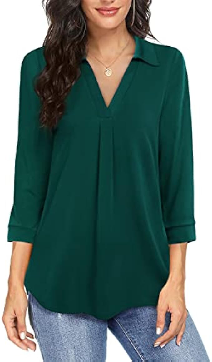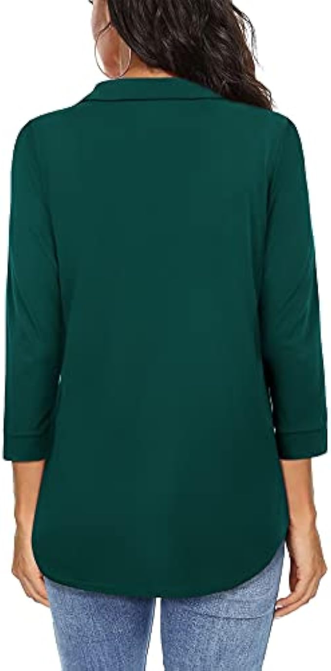 Premium Quality Knit Material - Our 3/4 Sleeve Blouse for women is Made of Premium Soft and Stretchy Knit Fabric.When wearing this v neck blouse, you will feel that the fabric is soft and skin friendly.