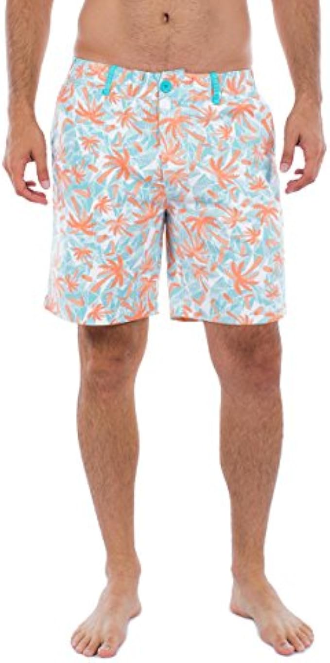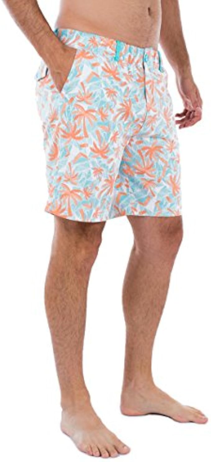 CASTAWAY BEACH Tipsy Elves blue and orange retro inspired men’s shorts with elastic waistband are great for relaxing at home or partying it up this summer.