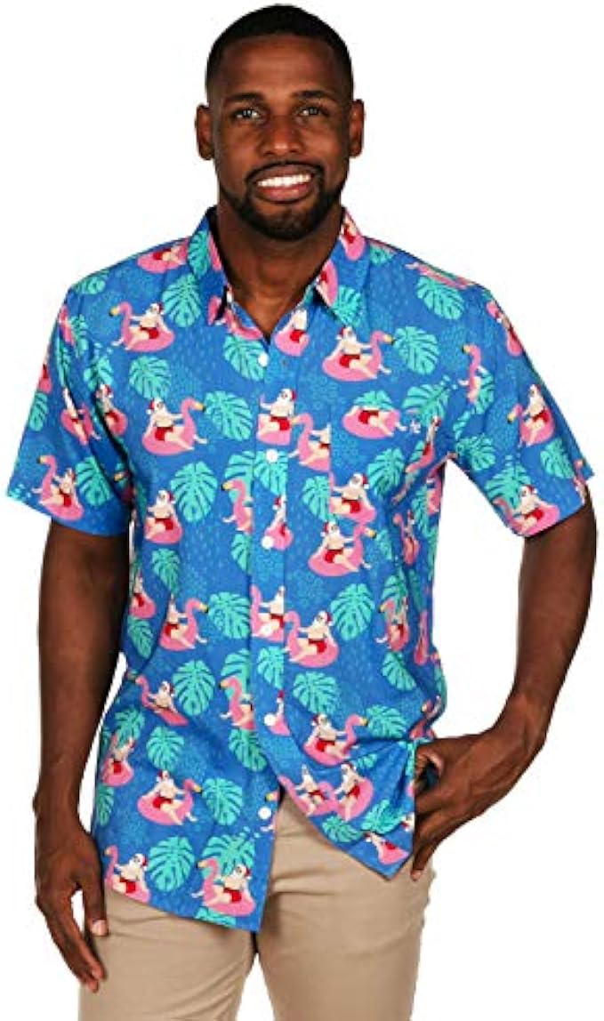COMFORT STRETCH FABRIC Tipsy Elves Christmas Hawaian shirts for men feature smooth-stretch lightweight, flexible fabric technology for effortless movement!