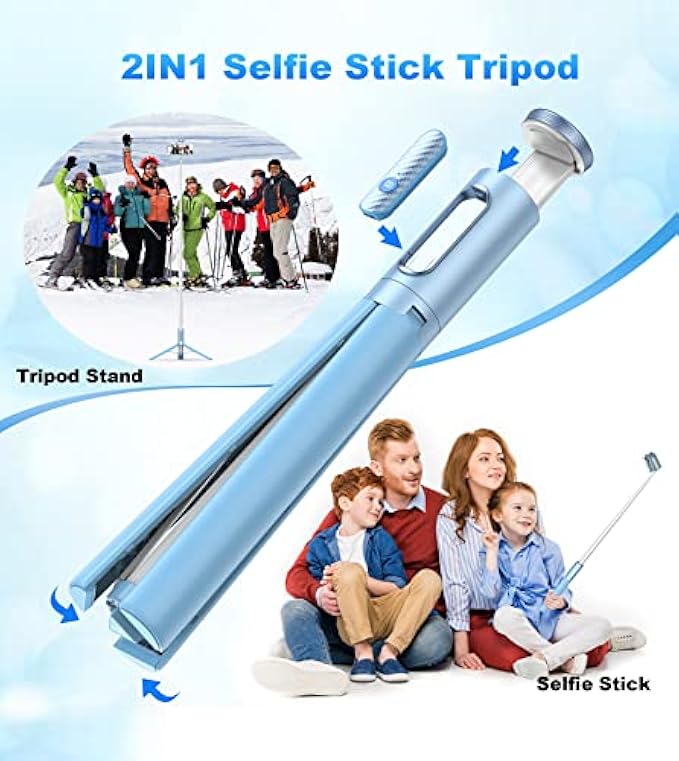 TONEOF Tripod, Cell Phone Selfie Stick, 60 Inch All-in-1 Stand with Integrated Wireless Remote, Lightweight and Portable, Extendable Tripod for 4-7 Inch iPhone and Android (Blue)