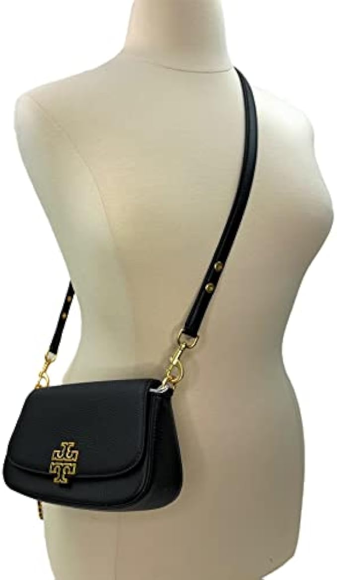 • Magnetic Closure Tory Burch Britten Pebbled Leather Convertible Crossbody Bag with Gold Hardware