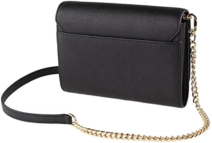 • Details: Two open compartments with 8 credit card slots and slip pocket One zip compartment Gold-tone hardware Slip pocket on back Fully lined Removable chain/leather shoulder strap with approx. 22" drop