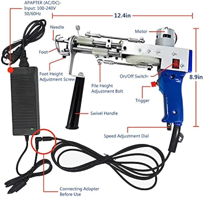 【Easy To Use&High Quality&Safety Protection】:[Note]:Before Pressing The Start Switch , Make Sure To Turn On The Power Switch First. GBgeffy Tufting Gun Can Adjust Speed And Pile Height. Can Be Adjusted At Will To Create Your Own Patterns.Easy To Use,High-Quality Aluminum Construction,High Precision,Long Life, Hight Quality,Less Failure.Tufting Gun Has Over-Voltage, Over-Current, And Short-Circuits Protection Functions, Provide Safety Protection For You.