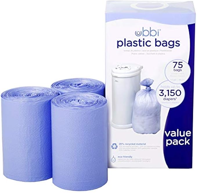 Ubbi Disposable Diaper Pail Plastic Bags, Value Pack, 75 Count, 13-Gallon Bags