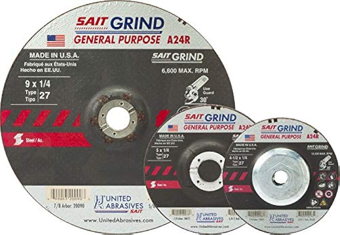 United Abrasives-SAIT 20063 A24R General Purpose/Long Life Grinding Wheel (Type 27/Depressed Center) 4 1/2" x 1/4" x 7/8", 25-Pack