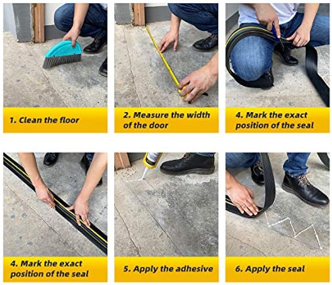 【UNIQUE & INNOVATIVE DESIGN】---12 FT garage door seal with yellow safety strip to ensure that the seal can be clearly seen by people entering and leaving. Anti-slip ridges reduce the risk of slipping. The serrated grooved base creates an ideal surface to provide excellent adhesion for the sealant and floor.